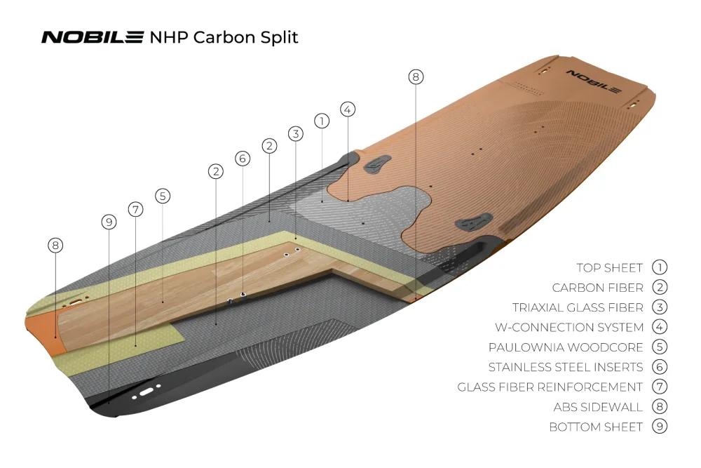 Carbon A carbon layer included in Nobile boards provides this model with extra stiffness, which is responsible for superb control and greater pop. Carbon construction boards tend to be stiffer, resulting in better handling as well as improved control in all water conditions. Aside from the technical aspects, a carbon layer gives our product a superb and nobile look.